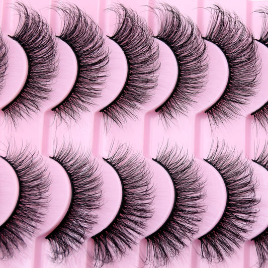 3/5/10 Pairs Natural Long 3D Mink Lashes Fluffy Volume