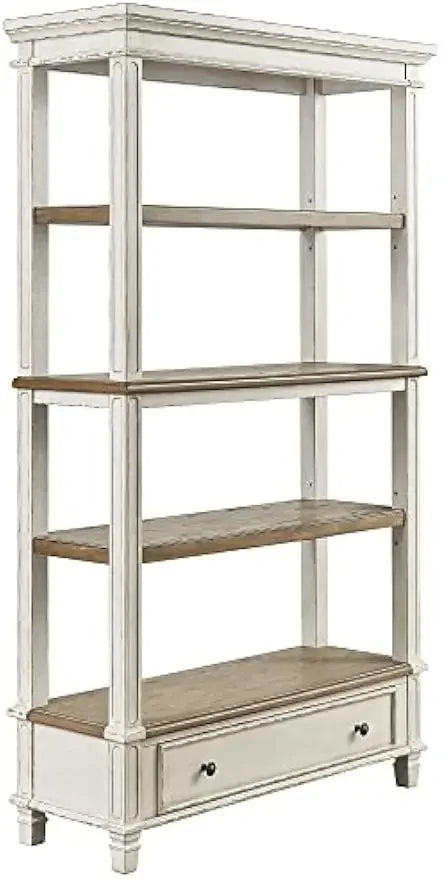 Realyn French Country 75" Bookcase with Drawer, Chipped White